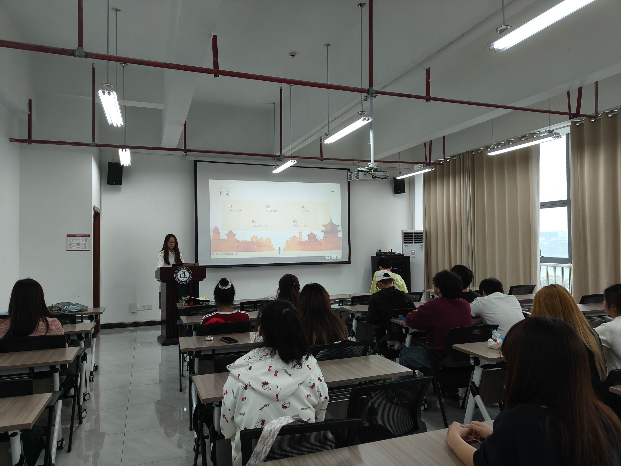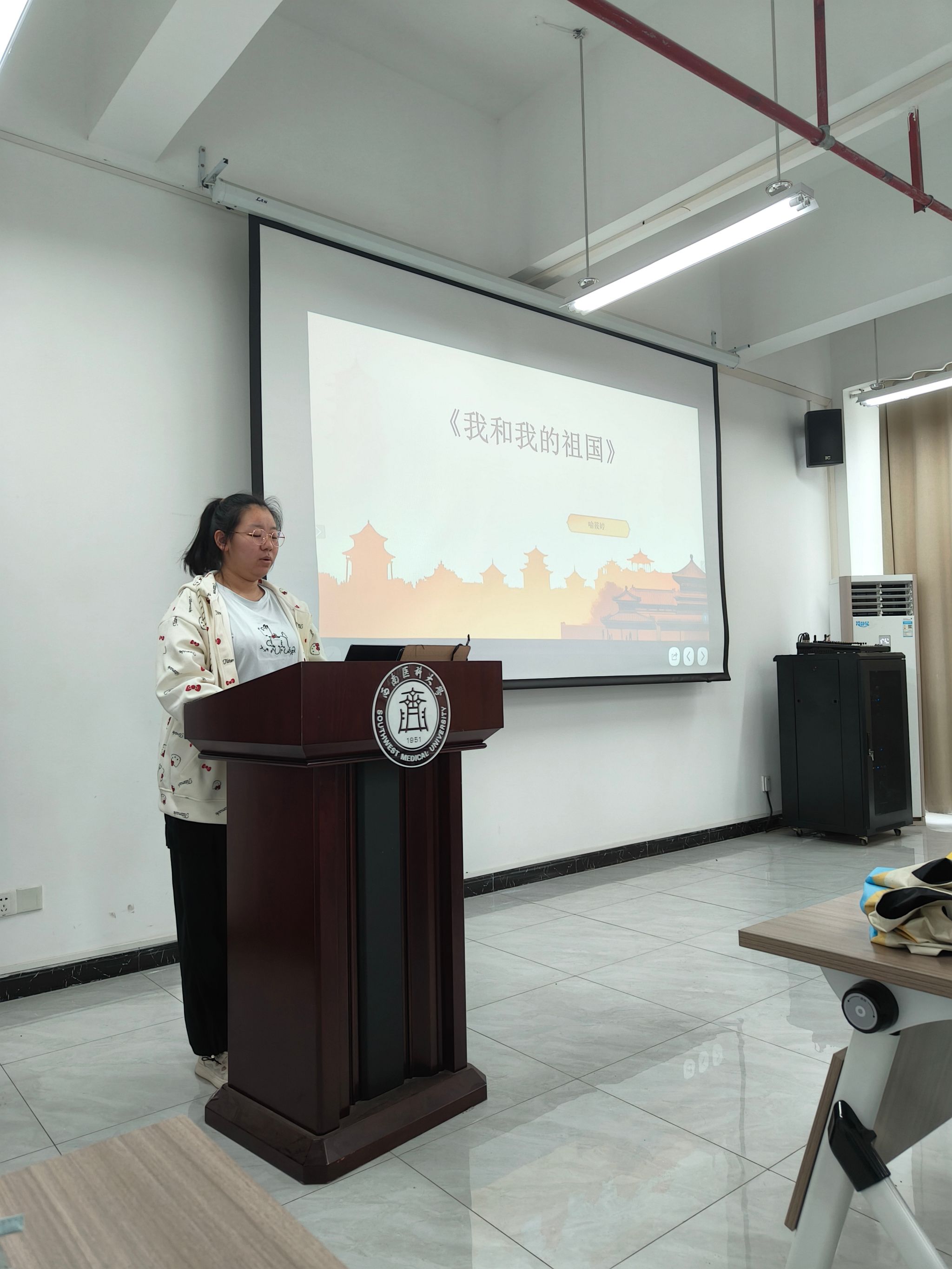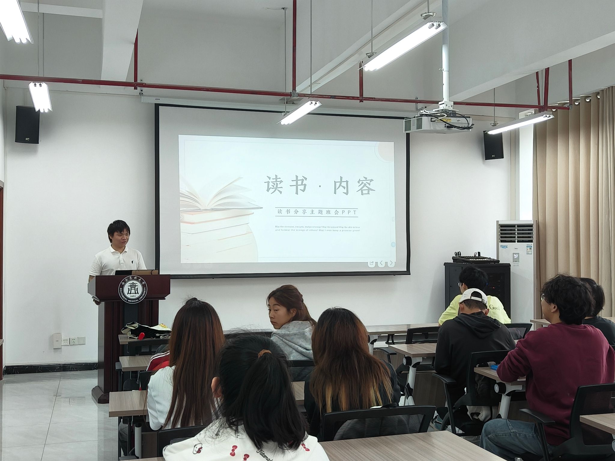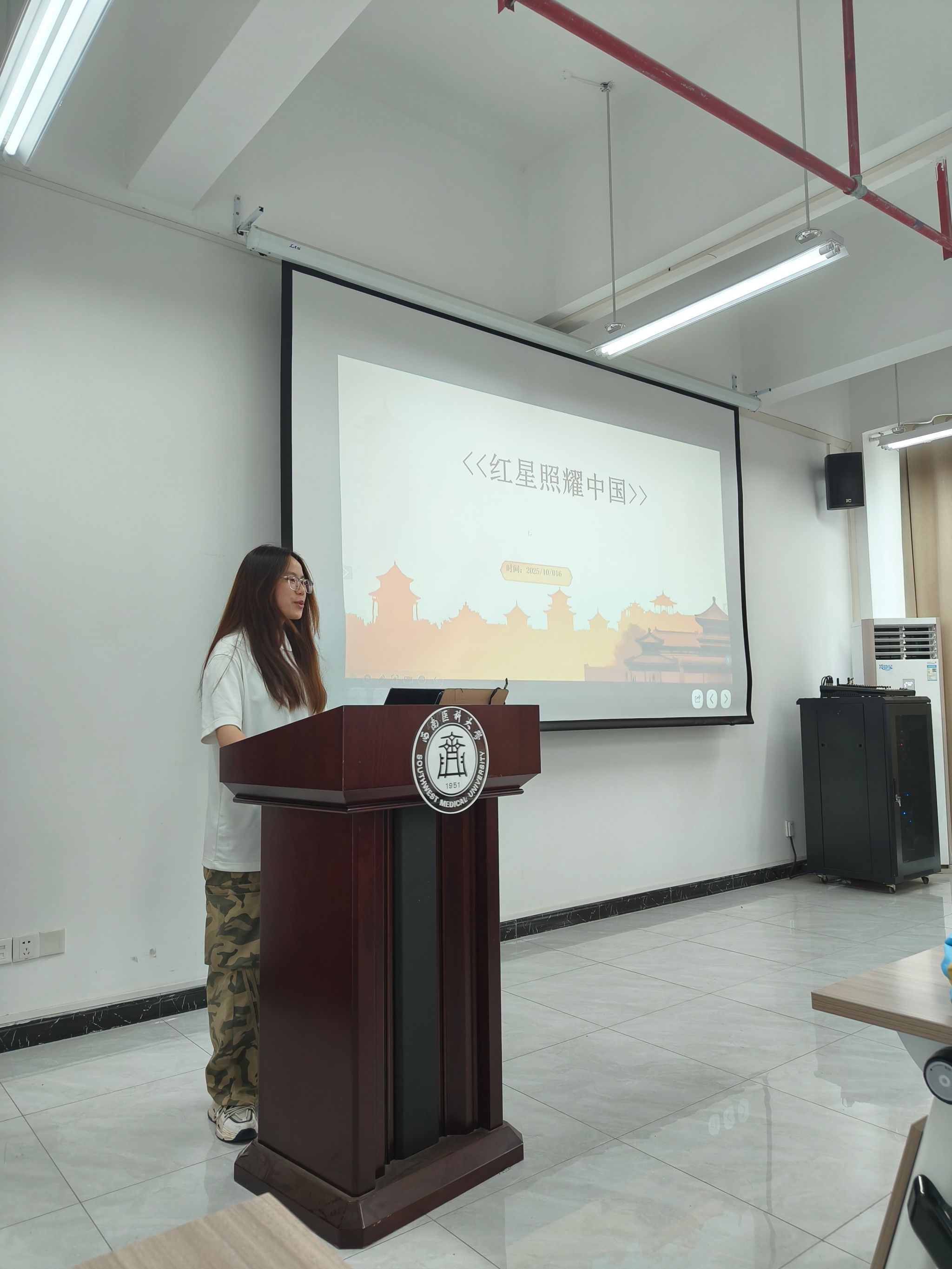 10月16日上午,药学院2024级临床药学5班在弘润楼532会议室进行以“家国情怀”为主题的读书分享会第二期,班级全体成员参加了此次活动,班长李姝函主持。