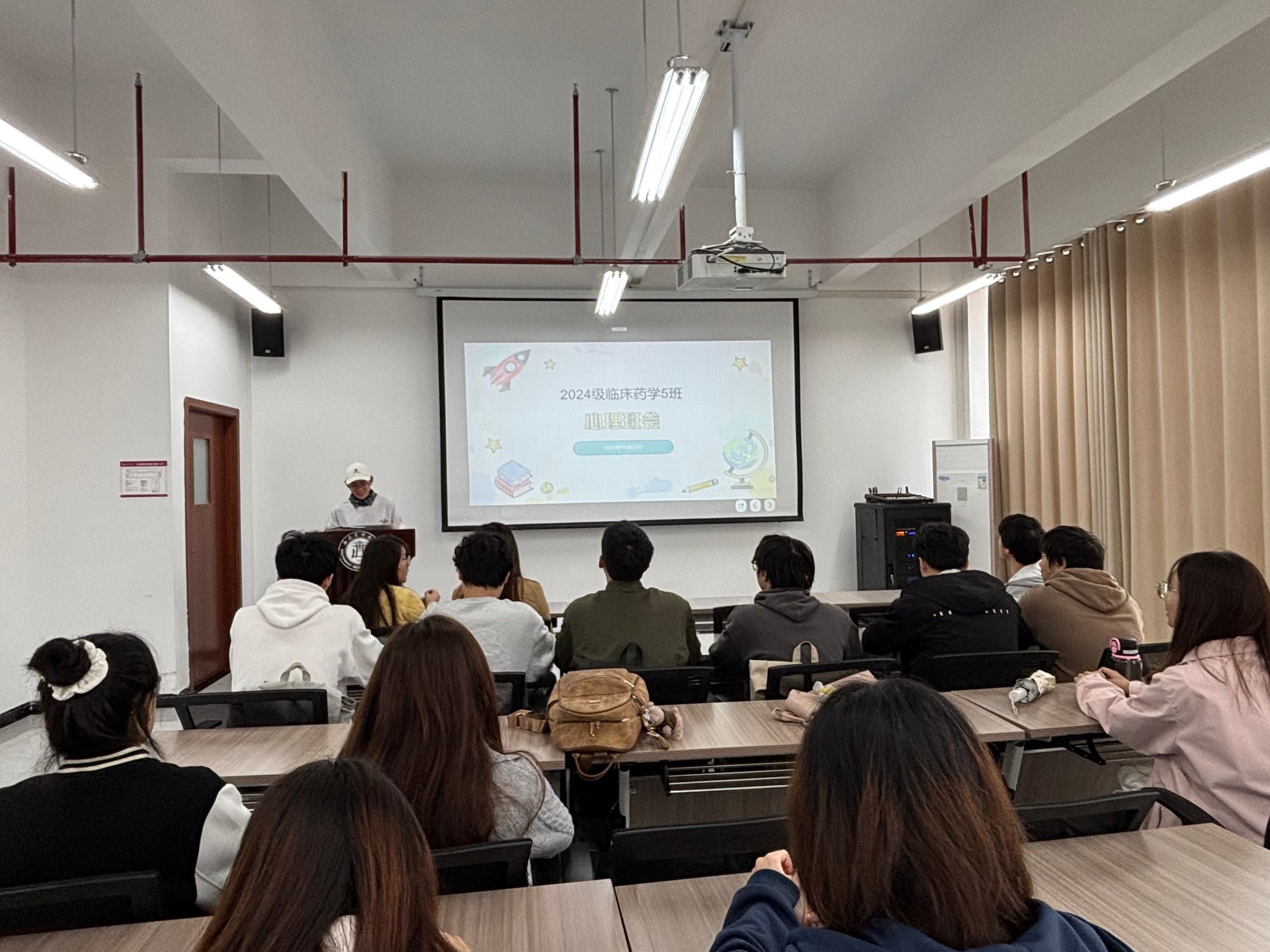 10月23日,西南医科大学药学院2024级临床药学5班在弘润楼532会议室开展10月主题团课、第三次家国情怀分享会和10月心理班会。全班19名同学及兼职班主任周全参加了此次活动,团支书文凤遥、班长李姝函和心理委员宋翼宏分别做主持。
