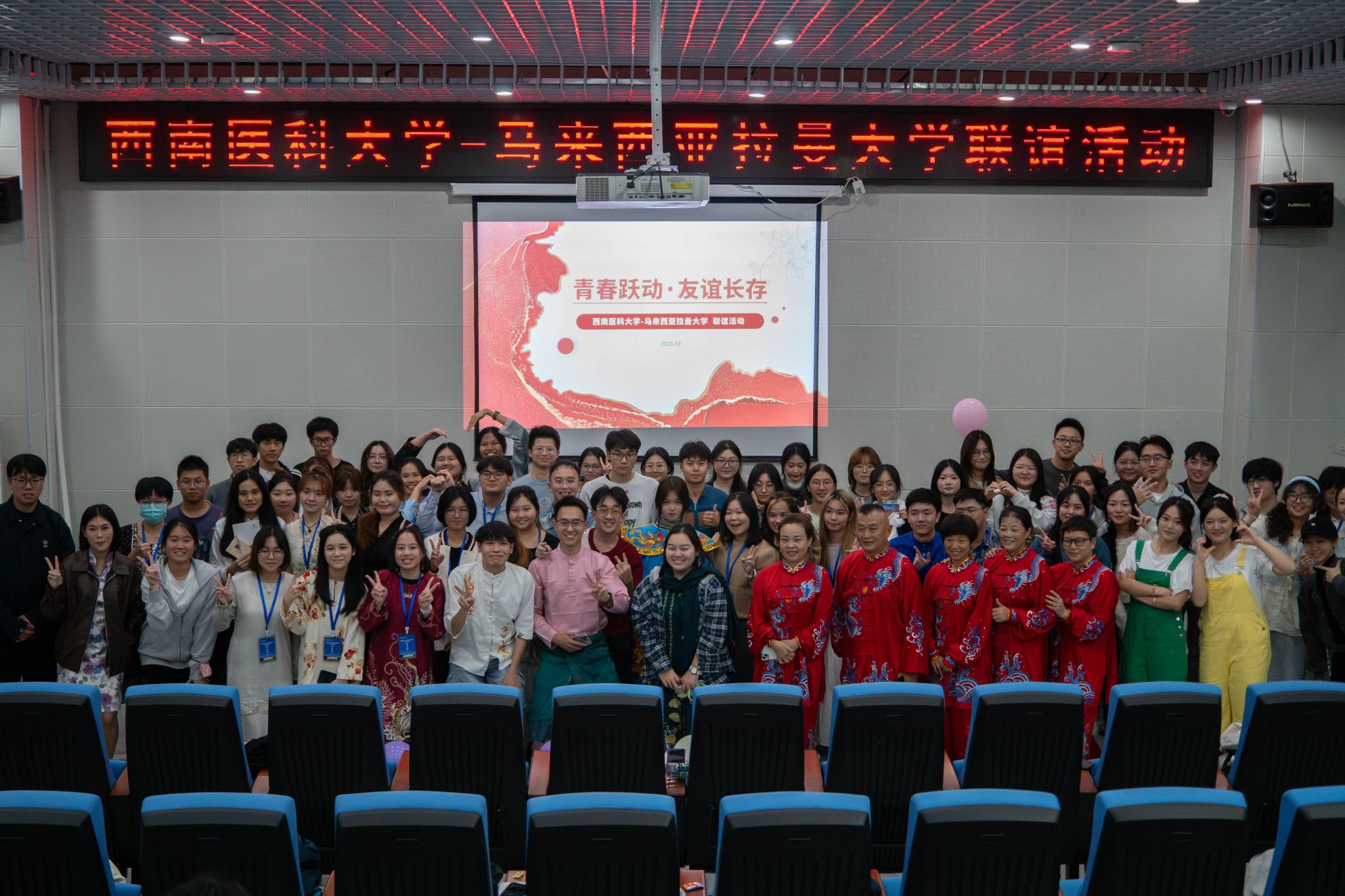 灯火映初心,歌舞传情谊。10月23日,药学院组织开展了以“青春跃动・友谊长存”为主题的联谊活动。拉曼大学师生代表团与西南医科大学师生齐聚一堂,以歌舞为媒、以文化为桥,在欢声笑语中续写两校合作佳话,共绘青春交流画卷。