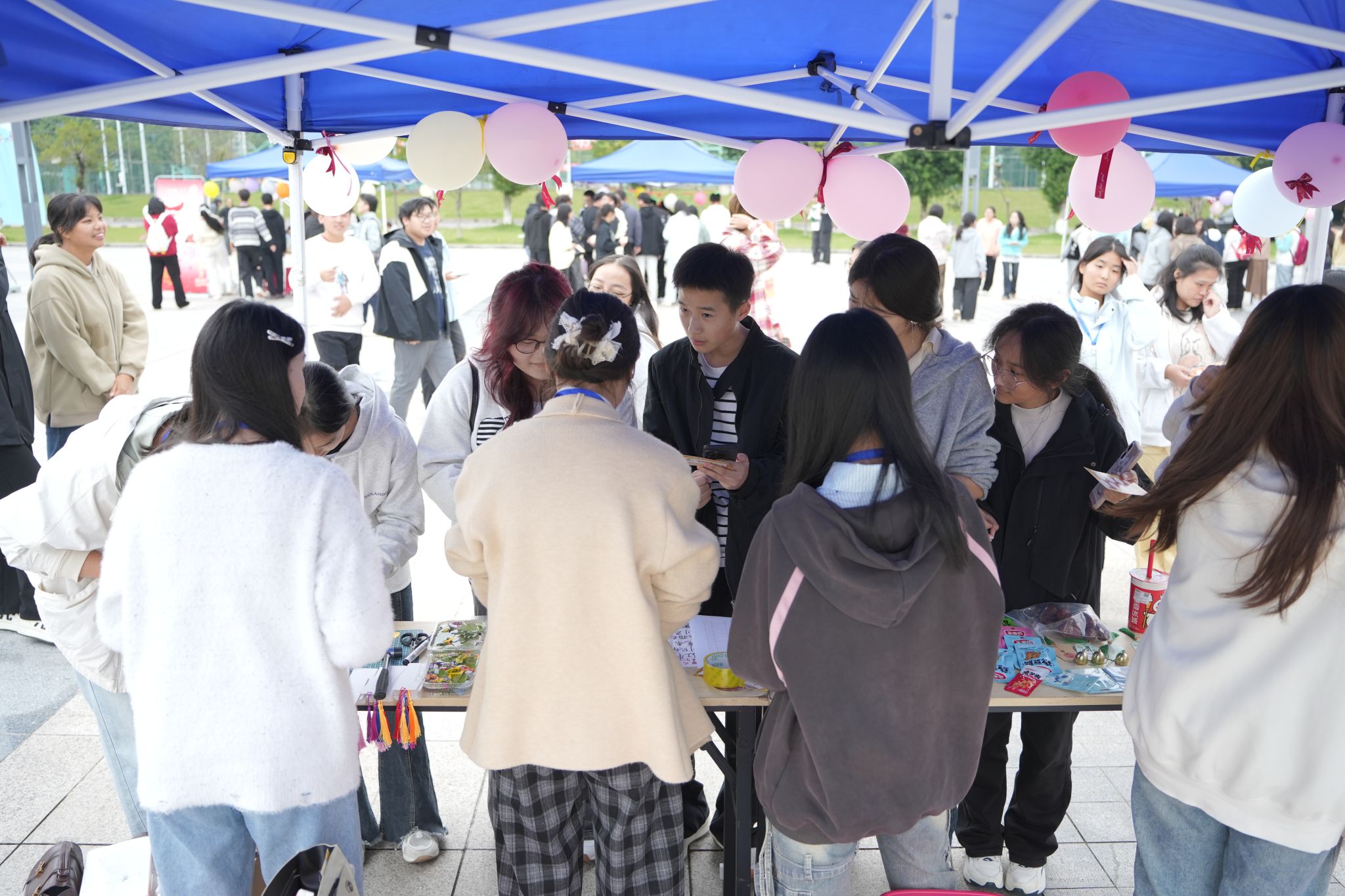 本次趣味迎新游园会分为现场演出和摊位游戏两个环节。演出环节,校民乐团率先献演,一曲《珠玉》奏响传统雅韵,悠扬乐声浸润全场。流行歌曲演唱轮番登场,或活力激昂点燃氛围,或温柔婉转引发共鸣,吉他弹唱节目更添浪漫格调,表演尾声,全体同学齐声合唱歌曲《奔跑》,嘹亮歌声饱含青春力量,充分展现药苑学子的精神风采。摊位游戏环节共设置党史猜猜乐、趣玩民俗、“emoji猜中药”等20余个趣味游戏,同学们手持集章卡,踊跃参与各类特色游戏,在闯关集章、兑换礼品的过程中,尽享趣味互动的欢乐。