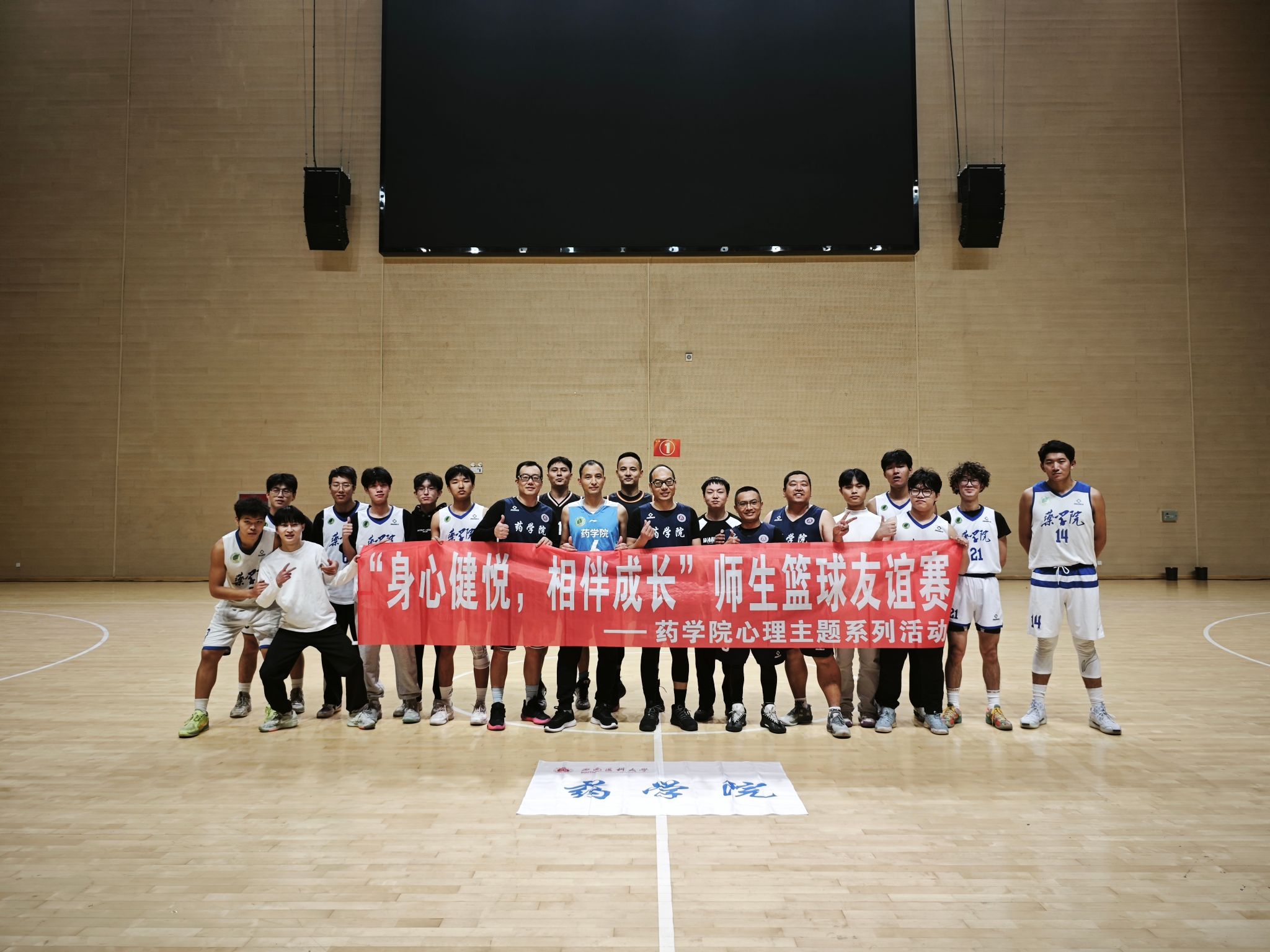11 月 19 日晚,青年体育馆主场馆内灯火璀璨、掌声雷动,由药学院工会主办的“‘药’动奇迹,‘康’复篮途”药学院・康复医学系篮球联谊赛暨药学院“身心健悦,相伴成长”第七届师生友谊篮球交流赛在此热血开赛。药学院院长韦思平、康复医学系主任张驰亲临现场,与师生共同见证这场兼具竞技性与凝聚力的体育盛宴。