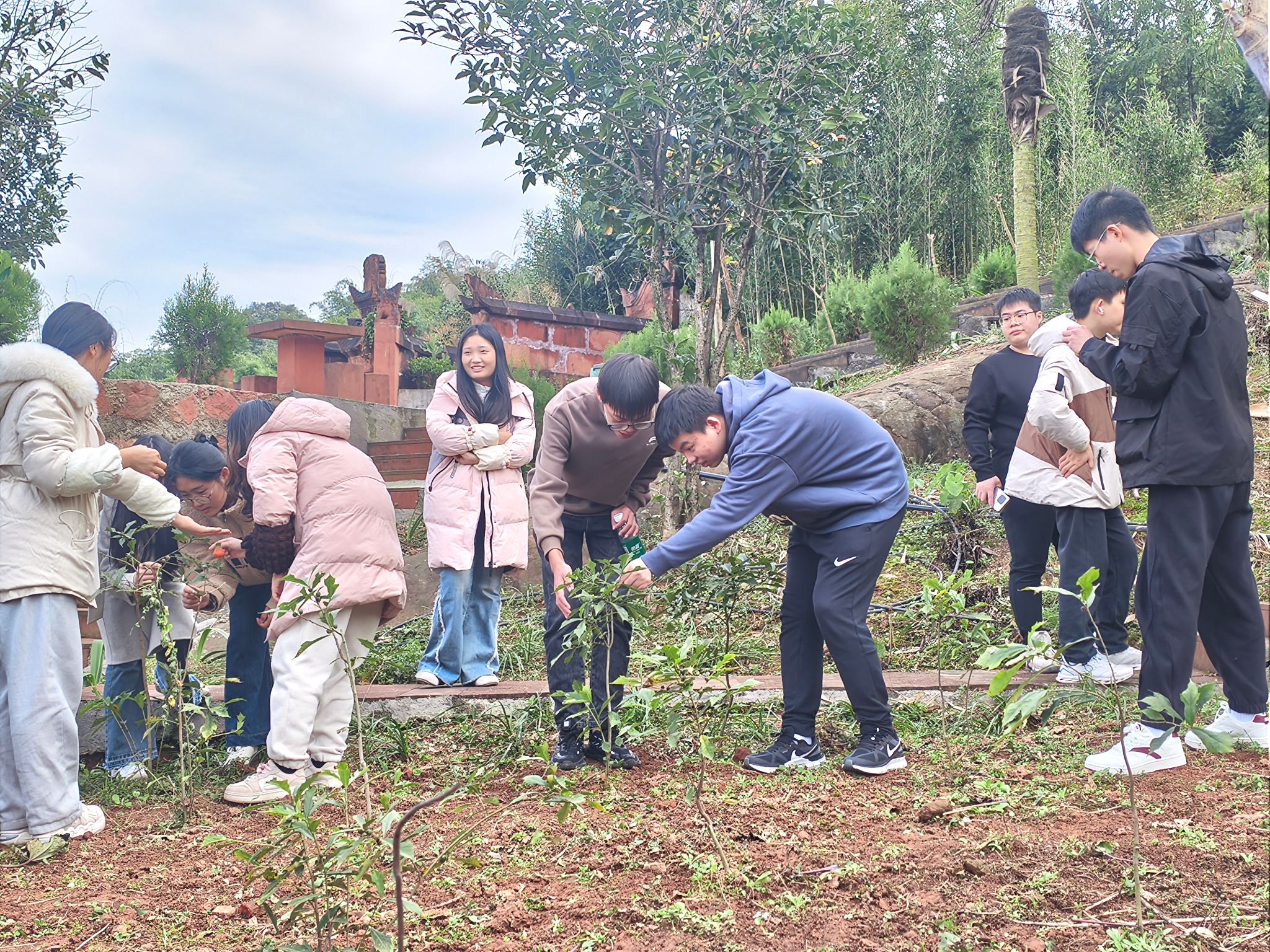 抵达目的地后,一场深秋的徒步探索之旅在牛王山开启。在带队老师的引导下,同学们穿梭于牛王山百草园的各个角落,仔细观察每一种草药的外形特征,认真聆听老师讲解其药用价值与功效。时而俯身轻嗅草药的独特气味,时而相互交流讨论,分享自己的发现与见解,现场气氛热烈而活跃。