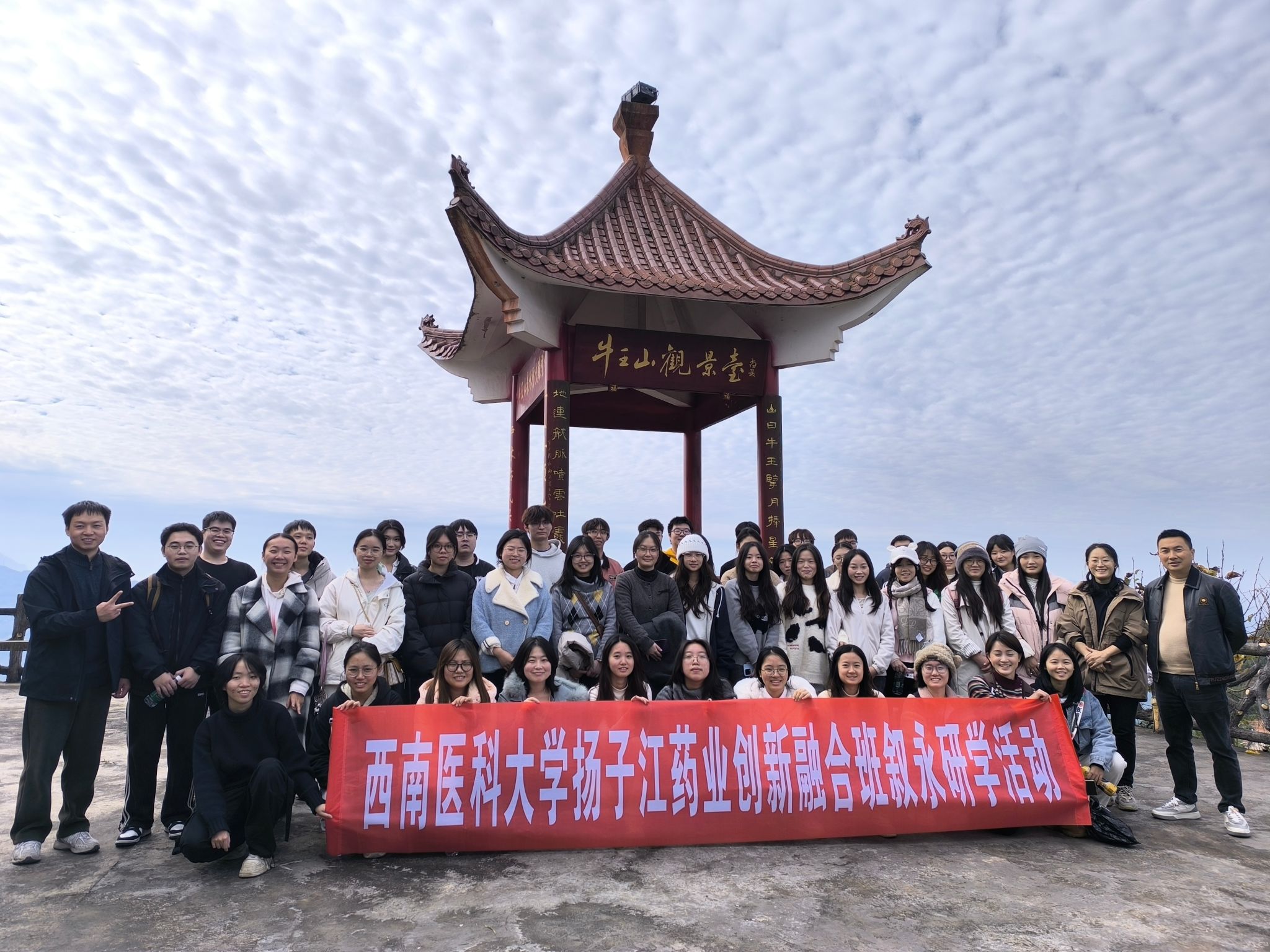 11月21日,秋阳和煦,药学院精心组织扬子江药业创新融合班40余名学员,前往叙永牛王山开展了一场别开生面的研学活动。此次活动由学院党委副书记、纪委书记赵蕾,学院教师段素群以及创新班副班主任任奎共同带队,为同学们的研学之旅筑牢安全与知识保障。