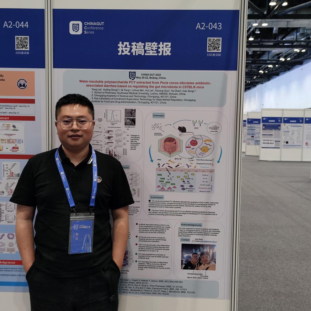 此外,以药学院2021级硕士研究生赖勇为第一作者、宋璨为通讯作者的论文“Water-insoluble polysaccharide PCY extracted from Poria cocos alleviates antibiotic-associated diarrhea based on regulating the gut microbiota in C57BL/6 mice”入选会刊收录、壁报展示。