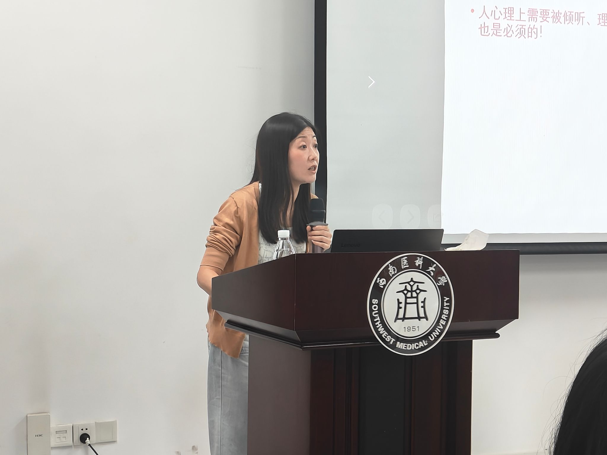 培训紧紧围绕沟通礼仪、仪态仪表以及社交场合行为规范等核心要点展开。彭丽冰巧妙结合学生干部日常工作的实际场景,采用理论讲解、案例分析以及现场示范相结合的创新方式,深入浅出地阐述了礼仪在人际交往以及学生工作开展过程中的重要性。针对仪态仪表,彭丽冰从着装、站姿等细节入手,进行规范指导,强调非语言沟通在塑造个人形象中的关键作用。她还就常见社交场合的行为规范进行了分享,提供了诸多实用建议。整场培训内容详实,氛围活跃。