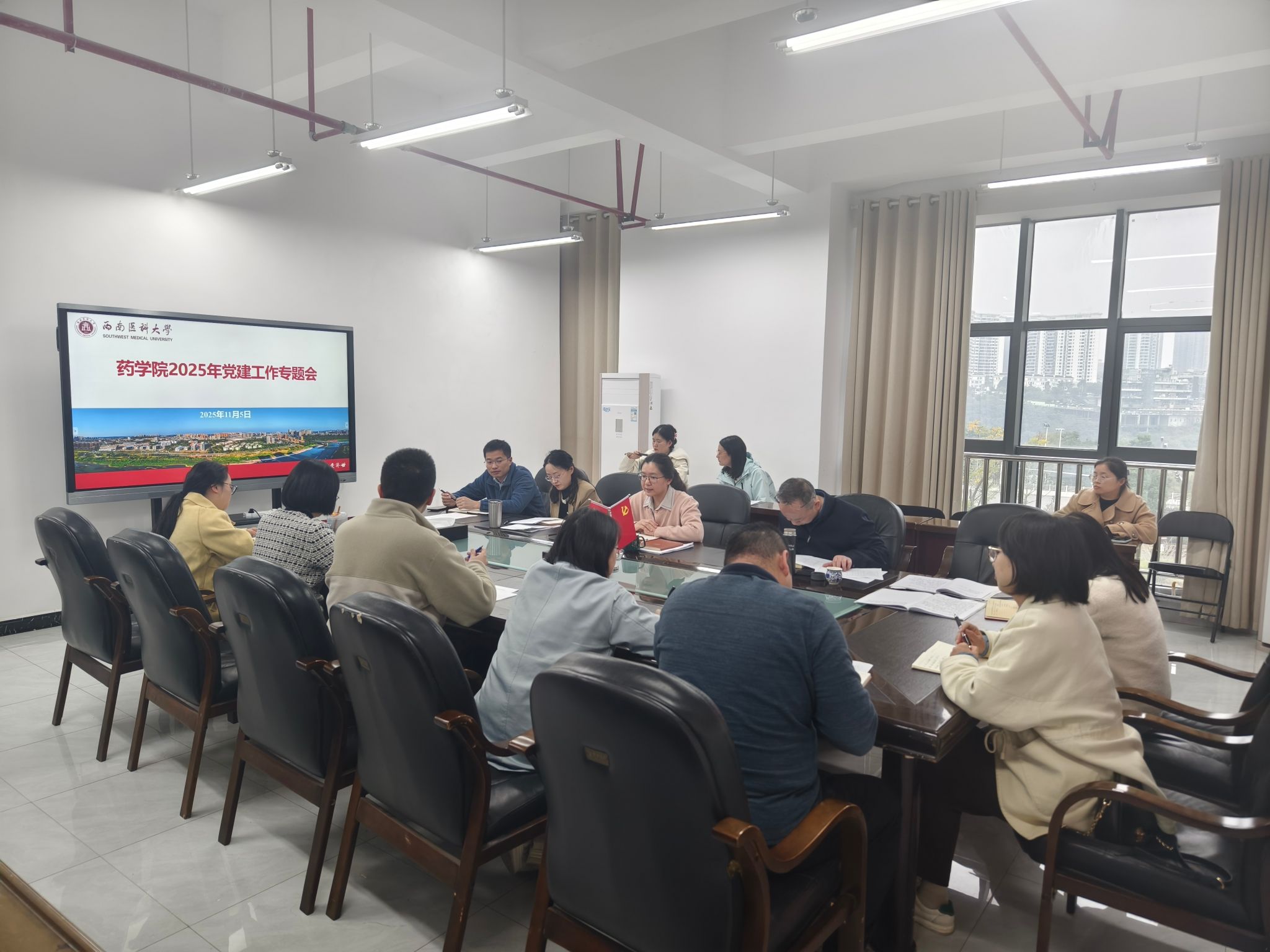 11月5日,药学院党委在弘润楼333会议室组织召开2025年党建工作专题会。会议由学院党委书记唐艳斌主持,党委委员、各党支部书记及党政办公室全体成员参加会议。