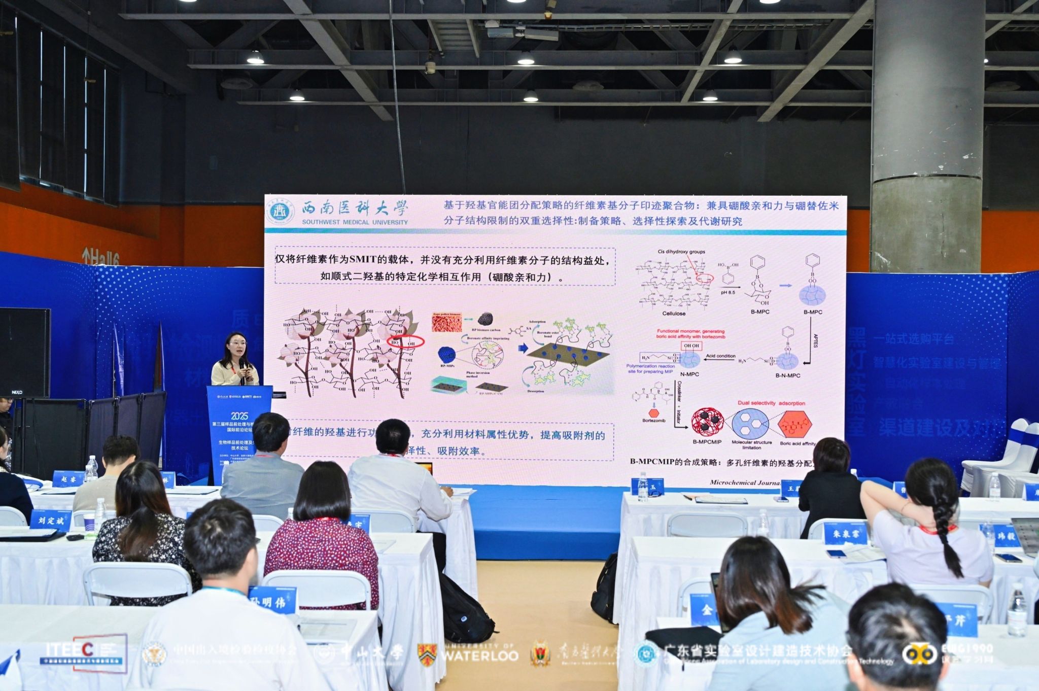 王丹丹参加了“生物样品前处理及分析技术论坛”分论坛。她以“生物质基分子印迹材料在复杂生物样品前处理中的应用研究”为题,向与会专家学者汇报了其团队的研究成果。报告深入探讨了生物质基分子印迹材料的设计、制备及其在复杂生物样本(如血液、尿液)中选择性富集与分离目标分子的性能与应用潜力,为解决生物样品前处理中的选择性差、干扰大等难题提供了新的思路和材料选择,引发了在场同行的广泛兴趣和讨论。