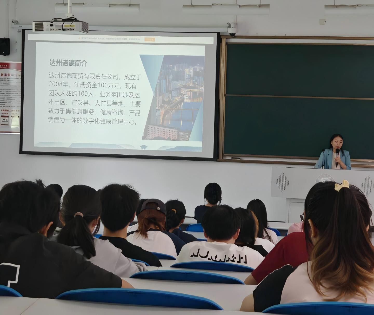 9月24日下午,药学院在学海楼102教室举办达州诺德商贸有限责任公司专场招聘会。此次招聘会吸引药学院2026届毕业生及部分低年级学生共计50余人参与,为企业与学生搭建了高效沟通的双向选择平台。
