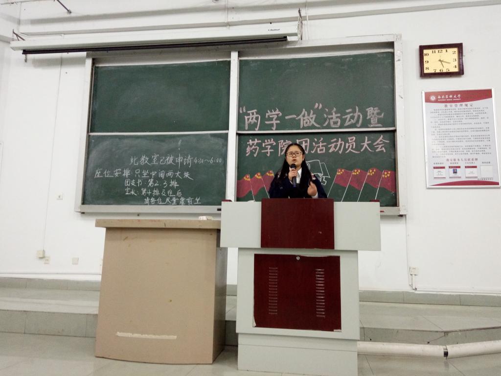 2016年11月9日,随着团活的到来,药学院举办的“两学一做”活动暨团活动员大会在鸿文楼101举行,参加本次会议的人员有15、16级团支书以及各寝室室长。