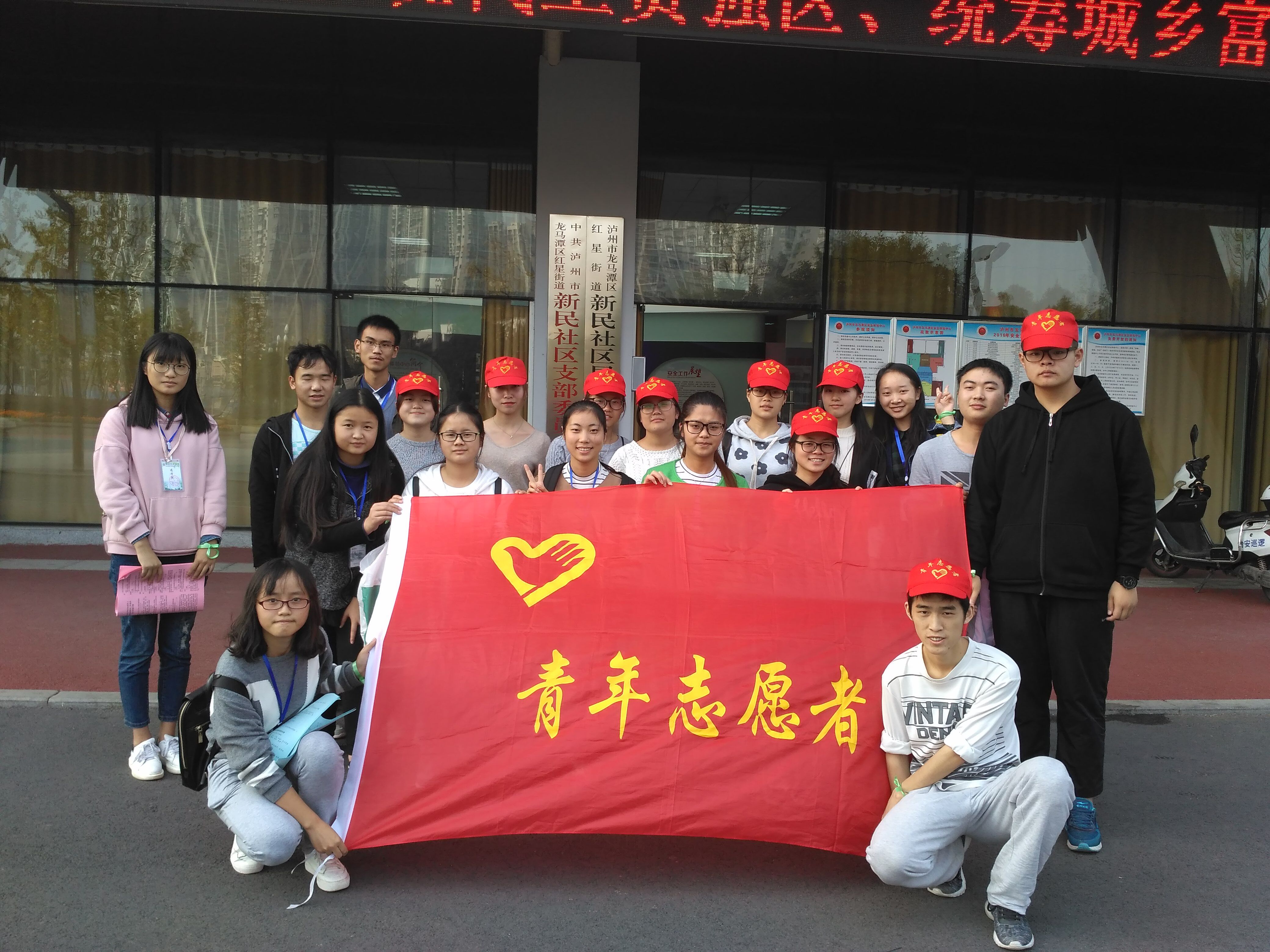 11月17日下午2点30分,药学院外联部以及志愿者们在新民社区工作人员的指导下在新民社区街道开展了志愿者活动。志愿者们戴着小红帽,充满青春活力。