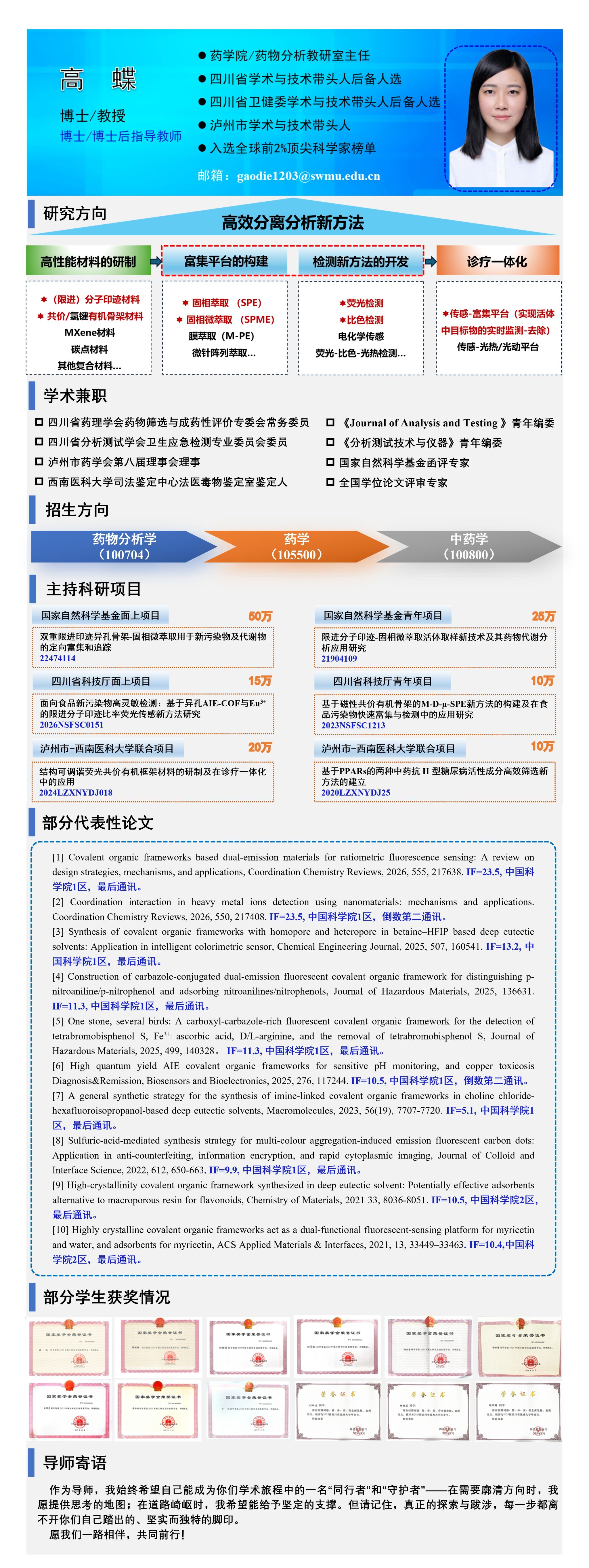 地址:四川泸州市城北西南医科大学 药学院 邮编:646000